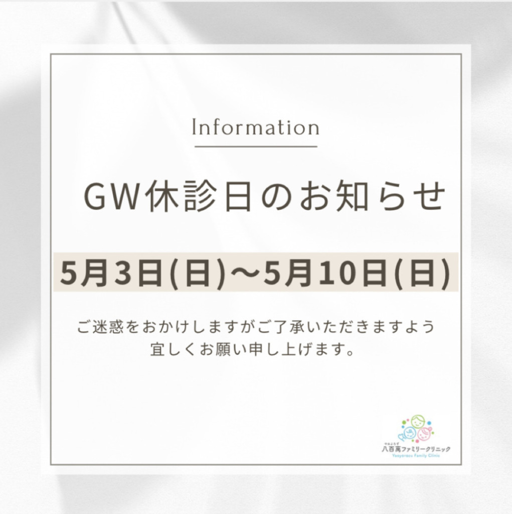 ゴールデンウィーク期間の休診日程についてお知らせいたします。